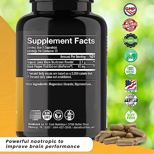 Supports cognitive performance – Dr. Emil’s Lion’s Mane Smart Shrooms is a powerful brain boosting nootropic that optimizes cognitive performance and promotes mental clarity, focus and memory.