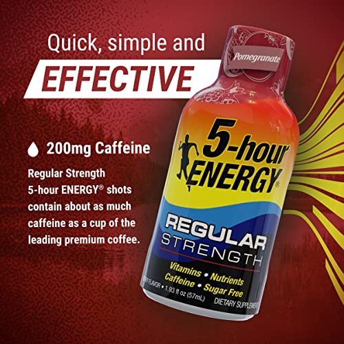 Specification: 5-hour ENERGY Regular Strength Energy Shot | Pomegranate Flavor | 1.93 oz. | 24 Count | Sugar-Free & Zero Calories | B-Vitamins & Amino Acids | 200mg Caffeinated Energy Shot | Dietary Supplement