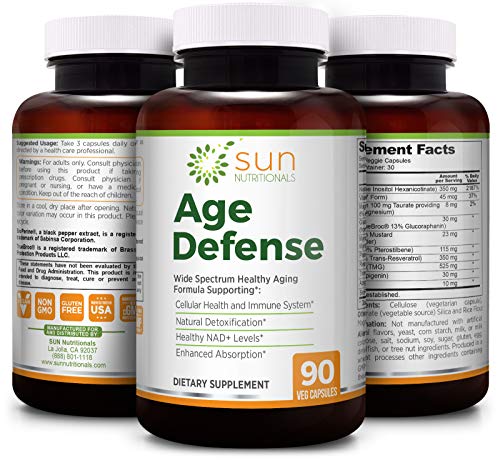 PREMIUM ANTI-AGING SUPPLEMENT WITH SUPERIOR, HIGH PURITY INGREDIENTS: Combining findings of the latest research, Age Defense is a broad spectrum blend of ingredients that include Sulforaphane precursors Glucoraphanin and Myrosinase, a CD38 inhibitor Apigenin, Sirtuin and Nrf2 activators Pterostilbene and Trans-Resveratrol, NAD+ precursors Niacin and TMG, Vitamin K2, and Magnesium. BioPerine is present to enhance bioavailability of the ingredients.