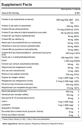 Specification: ANDREW LESSMAN Essential-1 Multivitamin 3000 IU Vitamin D3 60 Small Capsules – 100 mcg Methyl B12. CoQ10 Lutein Lycopene Zeaxanthin. High Potency. No Additives. Gentle Ultra-Mild. One Daily Capsule