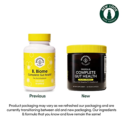 Beekeeper’s Naturals B.Biome,3-in-1 Prebiotic Probiotic & Postbiotic for Adults,Complete Gut & Digestive Health Supplement for Men&Women,Propolis Powered-Dairy/Gluten-Free Vegan Capsules