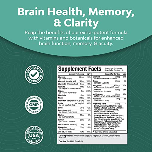 Brain pills for memory – Our mental focus supplement supports memory thanks to our natural formula with vitamin B complex plus DMAE bacopa monnieri L-tyrosine EGCG green tea extract bilberry and more