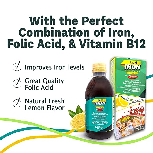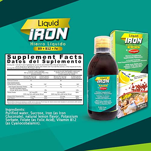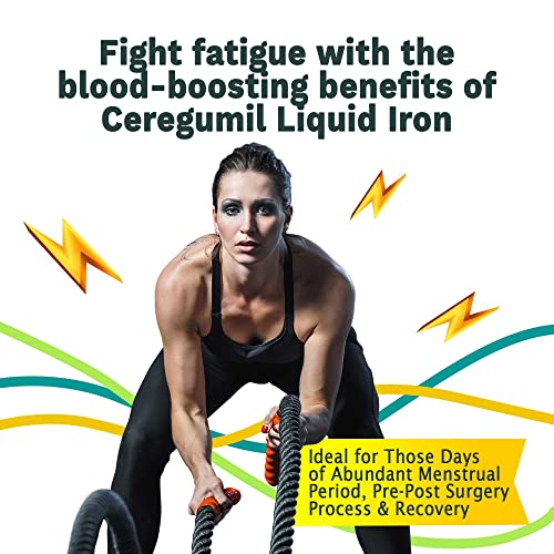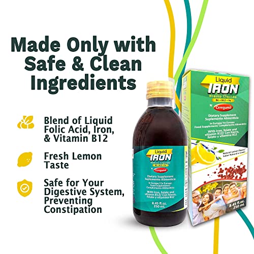 Specification: Ceregumil – Liquid Iron, Iron Vitamin with Cyanocobalamin Vitamin B12, Iron from Ferrous Gluconate, and Folic Acid, Gluten-Free Iron Support for Anemia and Constipation, Natural Lemon Flavor 8.45fl oz