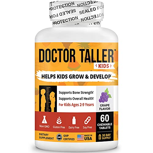 Doctor Taller Kids by NuBest – Support Healthy Growth of Kids with Multivitamins and Multiminerals – for Kids Ages 2 to 9 – Grape Flavor – 60 Vegan Chewable Tablets | 1 Month Supply