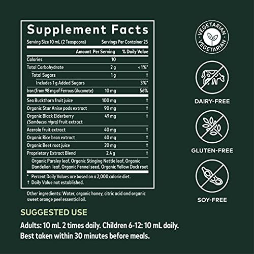 Gaia Herbs Plant Force Liquid Iron – Vegetarian Iron Supplement to Help Maintain Healthy Iron & Energy Levels – with Star Anise, Sea Buckthorn, Beet Root, Dandelion & Nettle – 8.5 Fl Oz (25 Servings)
