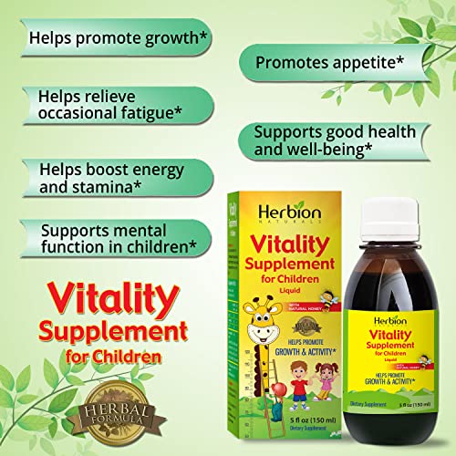 Specification: Herbion Naturals Vitality Supplement Syrup for Children, Promotes Growth and Appetite, Relieves Fatigue, Improves Mental and Physical Performance, Boosts Energy, 5 FL Oz – For Kids of 1 Year and Above