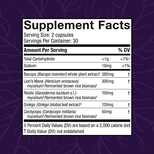 Specification: Host Defense, MycoBotanicals Brain Capsules, Promotes Concentration, Memory and Cognitive Function, Mushroom and Herb Supplement, Unflavored, 60 Count (Pack of 1)