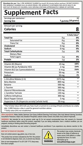 Specification: Kodagenix Pre Workout Gummies 300mg Caffeine