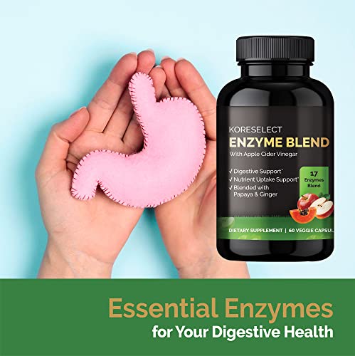 KORESELECT 17 Enzyme Blend for Digestive Gut Health Support Supplement, Immune Support,Bloating & Gas Relief, Nutrient Absorption for Women,Men with Apple Cider Vinegar, Ginger, Papaya – 60 Capsules
