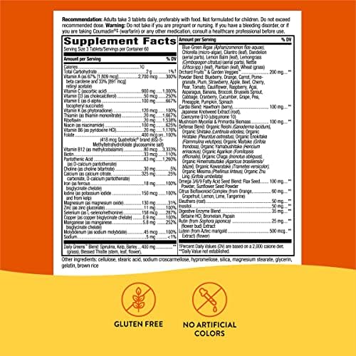 FOOD-BASED: Premium formulation blends Orchard FruitsTM, Backyard VeggiesTM, Each day GreensTM, and vitamins to help bone well being, each day power, eye well being, coronary heart well being, and immune well being (600 mg per serving)