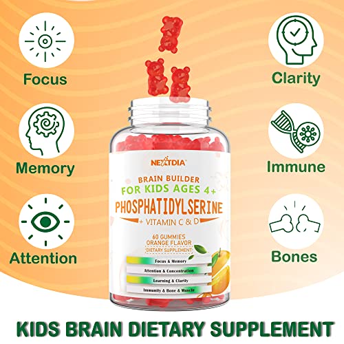 Specification: NextDia Kids Phosphatidylserine Gummies 100mg Bundle with Adult Phosphatidylserine Gummies 500mg Brain Supplements for Memory + Focus & Concentration + Cognition