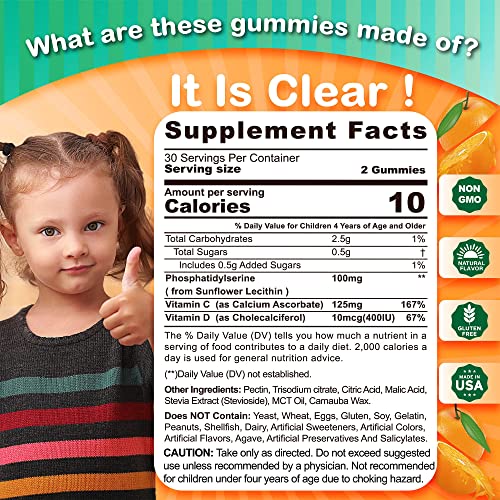 [Premium 3-In-1 Kids Supplement] – Not like opponents who provide every ingredient alone, our every serving is full of 200mg Phosphatidylserineis( from sunflower lecithin ),125 mg Vitamin C and 10mcg ( 400 IU)Vitamin D3 that be a part of forces to assist your mind work at full throttle,which is specifically designed for budding children. Phosphatidylserine, often known as PS, performs a pivotal function in defending the cells in your mind, in addition to carrying messages on the mobile.