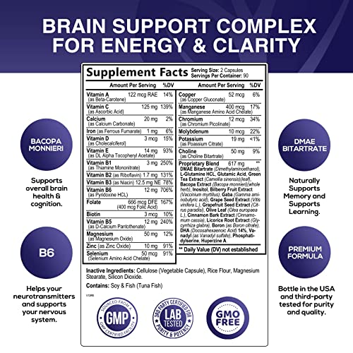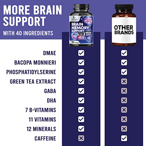 Specification: Nootropic Brain Supplements for Memory & Focus – Brain Booster Supplement with Phosphatidylserine & DMAE Bacopa for Concentration & Energy, Brain Health Support Vitamins for Men & Women – 180 Capsules