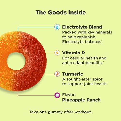 Specification: OLLY Post-Game Recover Workout Gummy Rings, Vitamin D, Turmeric, Electrolytes, Pineapple Punch Flavor – 25 Count