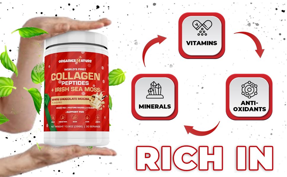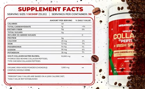 Specification: ORGANICS NATURE Collagen Peptides Powder with Irish Sea Moss White Chocolate Mocha Flavored | Naturally Sourced Hydrolyzed Collagen 30 Servings