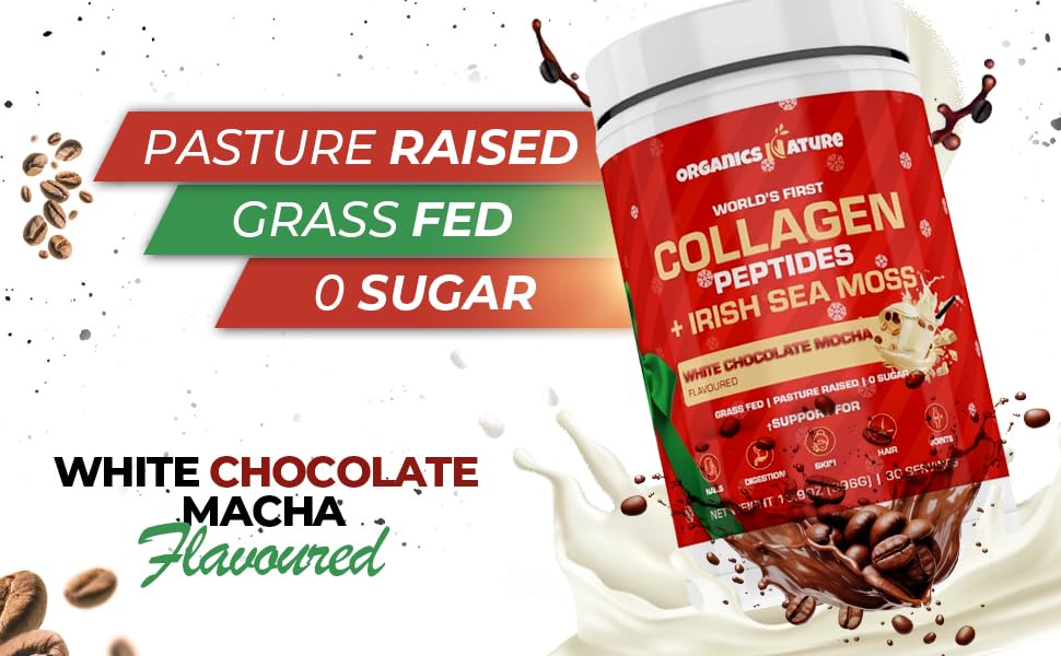 ORGANICS NATURE Collagen Peptides Powder with Irish Sea Moss White Chocolate Mocha Flavored | Naturally Sourced Hydrolyzed Collagen 30 Servings