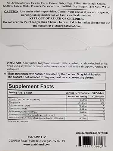 Specification: PatchMD – Glucosamine & Chondroitin Topical Patches – 30 Days Supply