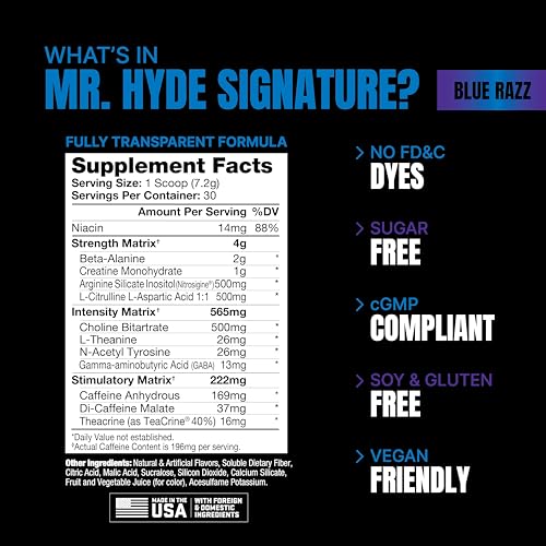 Specification: PROSUPPS Mr. Hyde Signature Pre Workout with Creatine, Beta Alanine, TeaCrine and Caffeine for Sustained Energy, Focus Pumps – Pre-Workout Energy Drink Men Women (Blue Razz, 30 Servings)