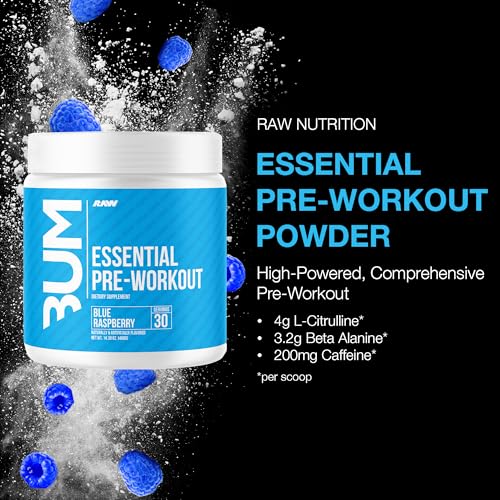 RAW Nutrition – Essential Pre – Chris Bumstead Pre Workout Formula, Sports Nutrition Pre-Workout Powders | Men & Womens Drink, Energy Powder for Working Out (Blue Raspberry)