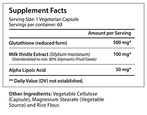 ✔ PREMIUM QUALITY, HIGH POTENCY and PURE Gluthatione – Our supplement is a potent combination of Glutathione Reduced Active Form 500 mg – Milk Thistle 100mg – Alpha Lipoic Acid 50mg per veg cap. Our products pass through researches to verify procedure for you get the safest and purest product. MADE IN USA with veggie caps Vcaps. Our products are made according to strict GMP USDA standards. Non GMO – Soy & Gluten Free